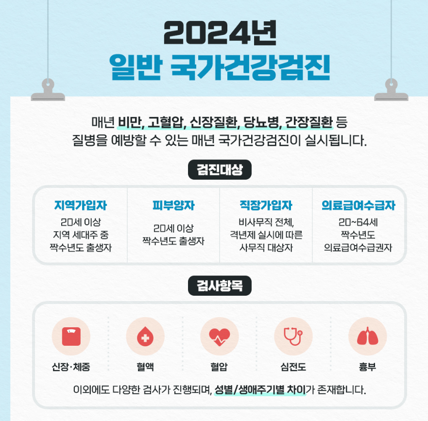 정기적인 검진을 통해 건강을 지키고, 더 나아가 가족과 사회의 건강에도 기여하는 여러분이 되시길 바랍니다. 올해 검진 대상자이신 분들 중 아직 건강검진받지 않으신 분 있다면, 바로 검진예약하시고 건강한 미래를 준비해 보세요!