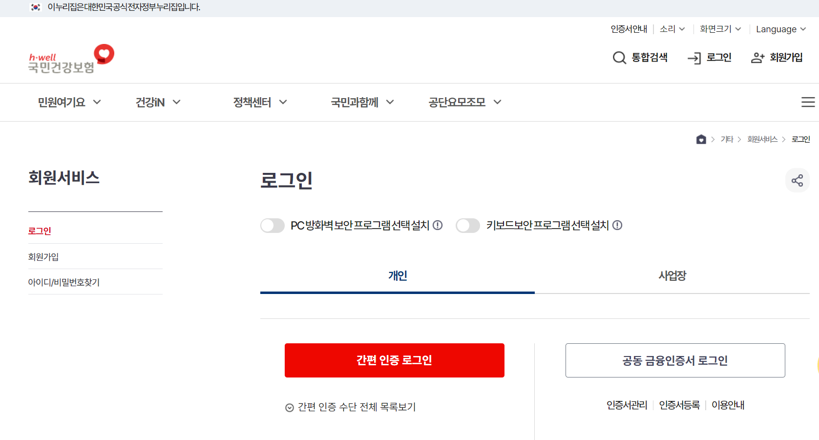 국민건강보험 홈페이지 로그인 뒤, 전체메뉴에서 '건강검진대상조회'를 클릭해서 확인할 수 있습니다.
