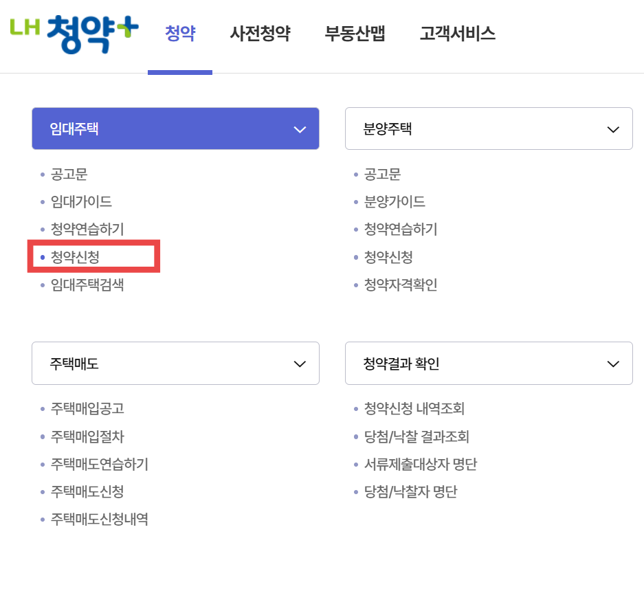 임대주택 메뉴창에는 '청약연습하기'도 있습니다. 많이 어려우신 분들은 이를 통해 모의연습을 충분히 하신 뒤에 신청해 보세요.