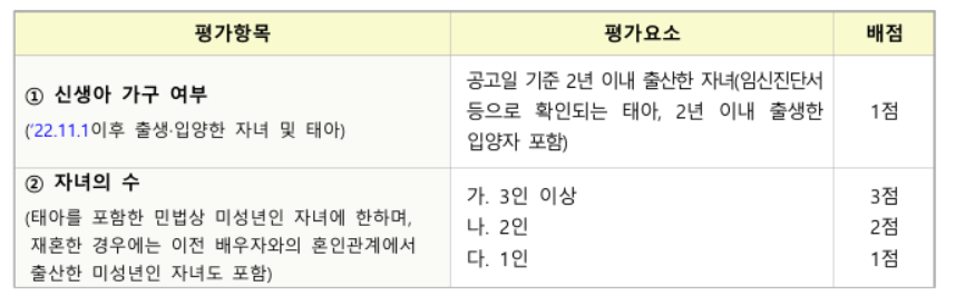 아래의 배점을 기준으로 총점이 높은 순으로 입주 대상자를 선정하며, 동점일 경우에는 추첨으로 우선순위를 결정합니다.