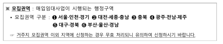 모집권역은 아래와 같습니다. 거주자 모집권역 이외 지역에서 신청하는 경우에는 무효로 처리됩니다.