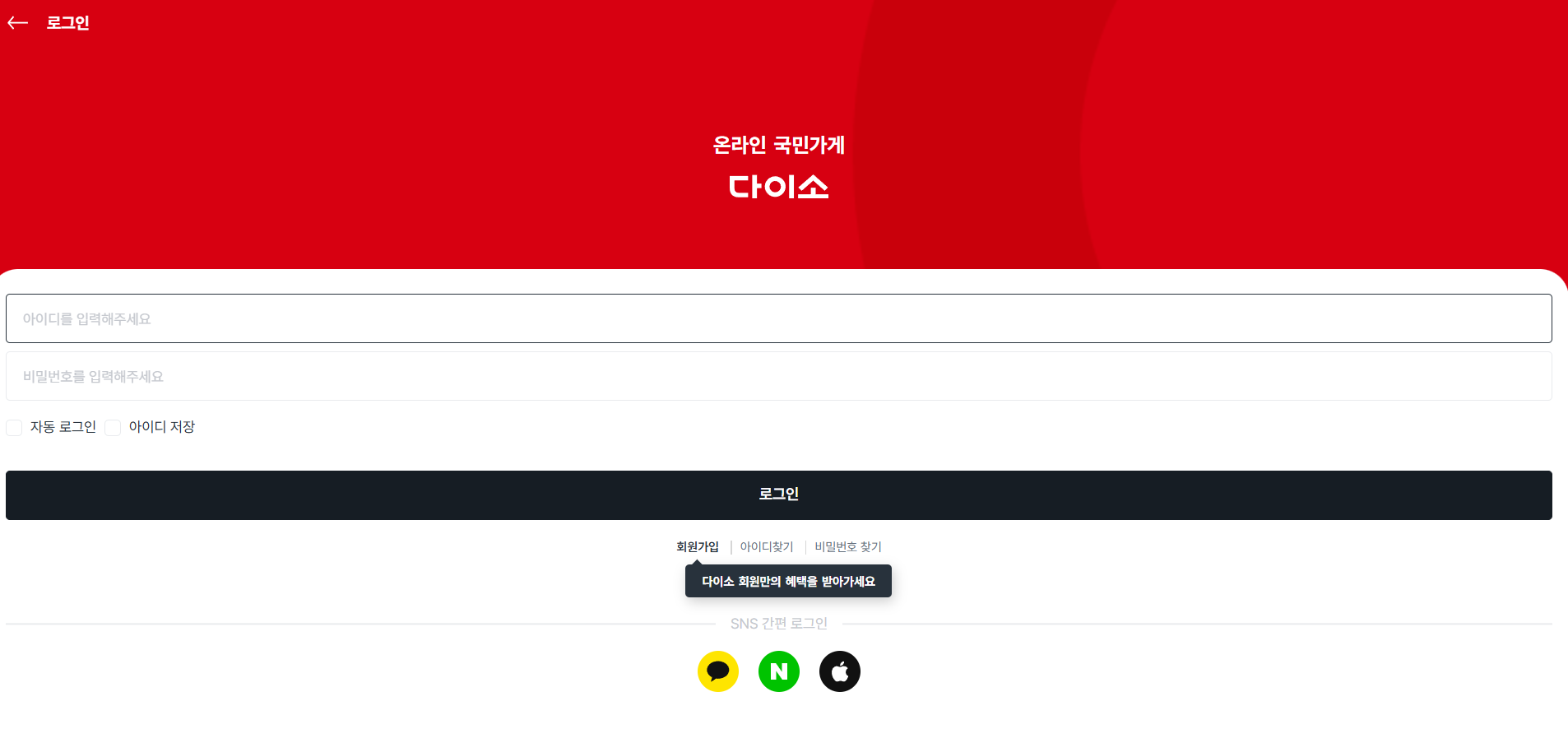 카카오나 네이버 아이디로도 간편 로그인할 수 있으니 편리하게 회원가입 해보세요.