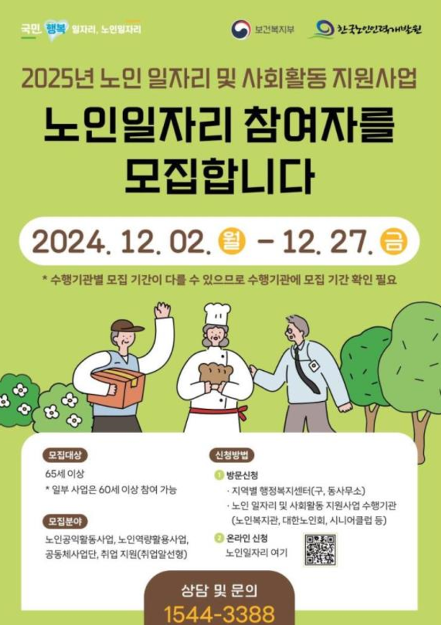 이번 포스팅에서는 2025년 노인 일자리 사업의 모집 유형, 신청 기간, 신청 방법 등을 자세히 알아보도록 할게요.