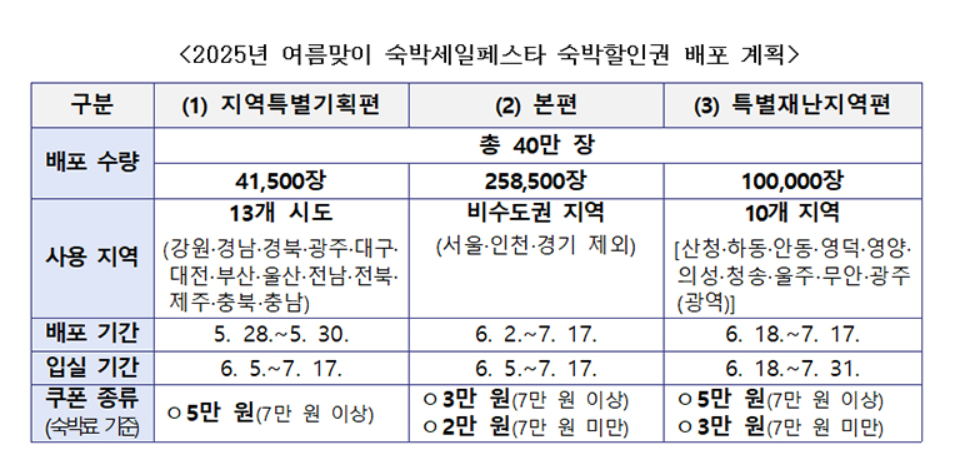 - 여름 휴가철을 앞두고 국내 여행 활성화와 지역경제 회복을 위해 마련된 정부 주관 행사입니다.