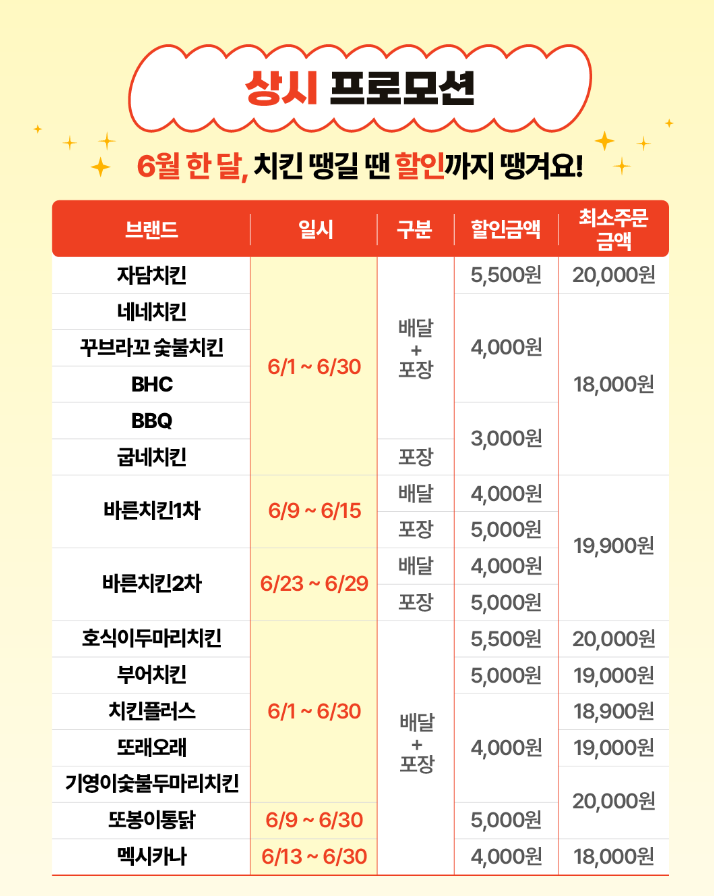 🍗 혜택 4: 6월 22일, 또래오래 치킨 특별 할인!